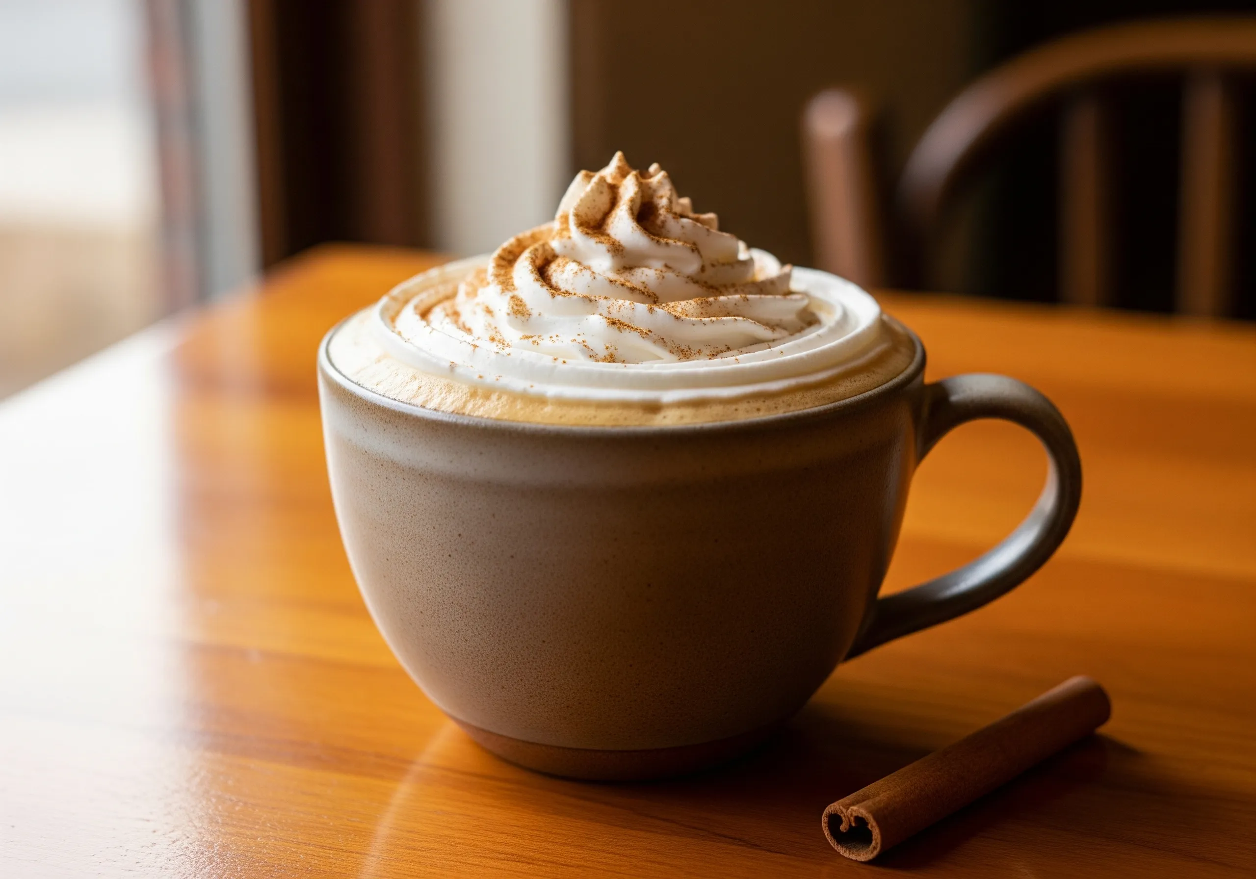 Espresso with pumpkin spice, steamed milk, and whipped cream (Fall).